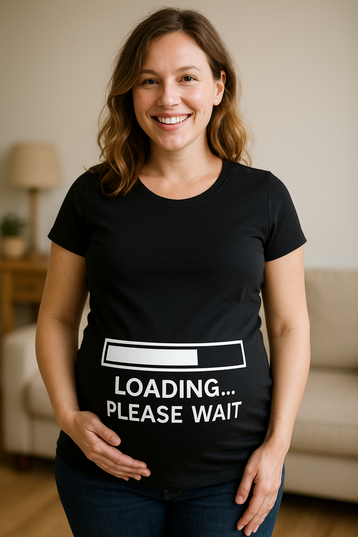 😂 Progresjosla uz vēderiņa? LOADING… PLEASE WAIT darbībā! Kad stāvi rindā veikalā, pēc kafijas vai fotosesijā – šis melnais grūtnieču T-krekls visiem ziņkārīgajiem paziņo, ka brīnums vēl ir ielādes procesā. Ielādes joslas grafika + asprātīgs uzraksts = momentāni smaidi, mazāk jautājumu un vairāk labu vibrāciju.