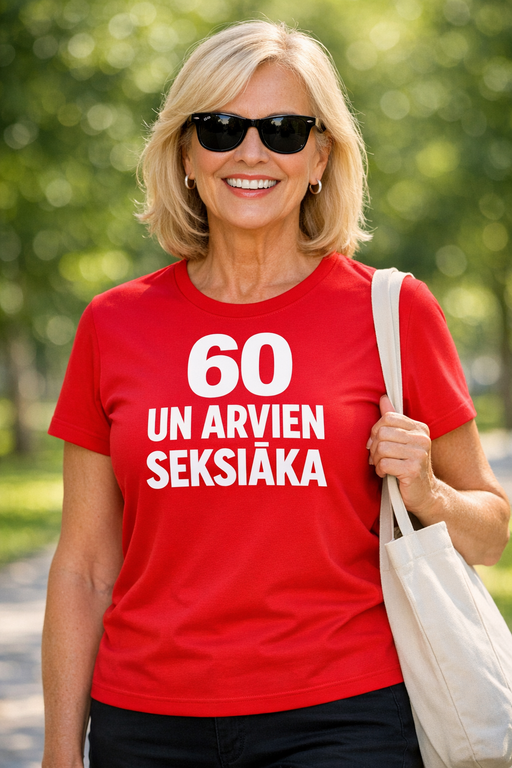 “60 UN ARVIEN SEXY” ir perfekts paziņojums tiem, kuri zina: harizma ar gadiem tikai aug. Košā sarkanā krāsa piesaista skatienus, bet uzraksts garantē komplimentus un smieklus jau pirmajās minūtēs.