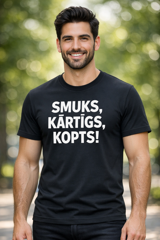 Krekls ar uzrakstu SMUKS, KĀRTĪGS, KOPTS!