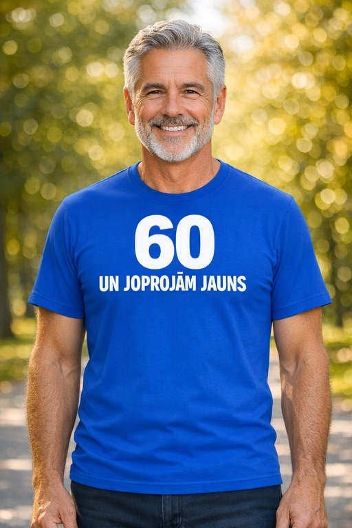 60? Tu joprojām esi jauns! Šis krekls ar uzrakstu 60 UN JOPROJĀM JAUNS perfekti der jubilāram ar humora izjūtu un labu enerģiju.