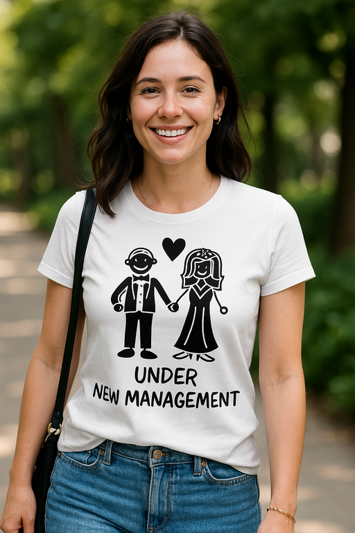 💍 Ja jaunā vadība ir pārņēmusi grožus? Uzvelc T-kreklu ar uzrakstu UNDER NEW MANAGEMENT un oficiāli paziņo par pārņemšanu!