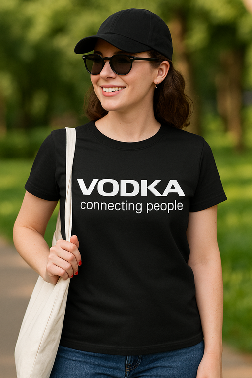 Kad vārdi beidzas, runā VODKA connecting people. 🥂 Šis melnais T-krekls ir jebkura tusiņa ledlauzis. Ideāls ballīšu dvēselēm un draugiem ar labu humoru. 😄