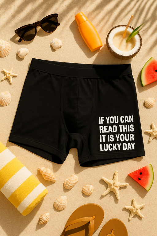 🍀 Ja vari to izlasīt, vari arī iekarot sirdi — IF YOU CAN READ THIS IT IS YOUR LUCKY DAY! Šie melnie vīriešu bokseršorti ar drosmīgu baltu uzrakstu skaidri pasaka: šodien ir veiksmes diena!