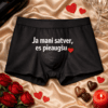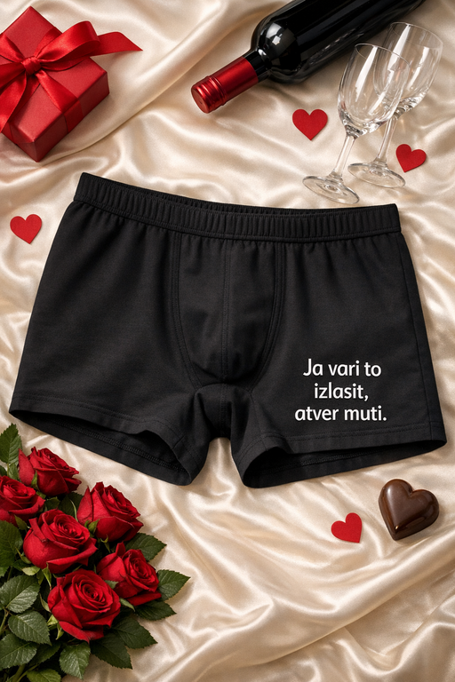 Ja vari to izlasīt, atver muti — melni vīriešu bokseršorti ar koķetu tekstu, kas pasaka visu tavā vietā un garantē smieklus īstajā brīdī.