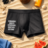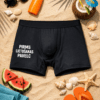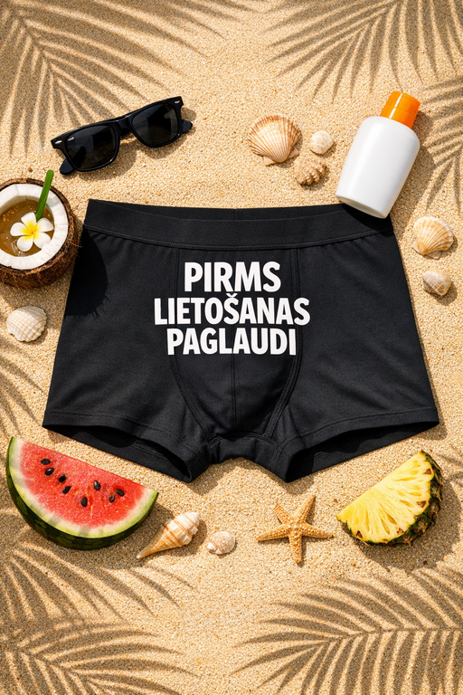 Klasika melnā krāsā un skaidrs vēstījums: “Pirms lietošanas paglaudi”. Ērti bokseršorti ar asprātīgu apdruku, kas uzlabo garastāvokli un piešķir attiecībām rotaļīgu dzirksti.